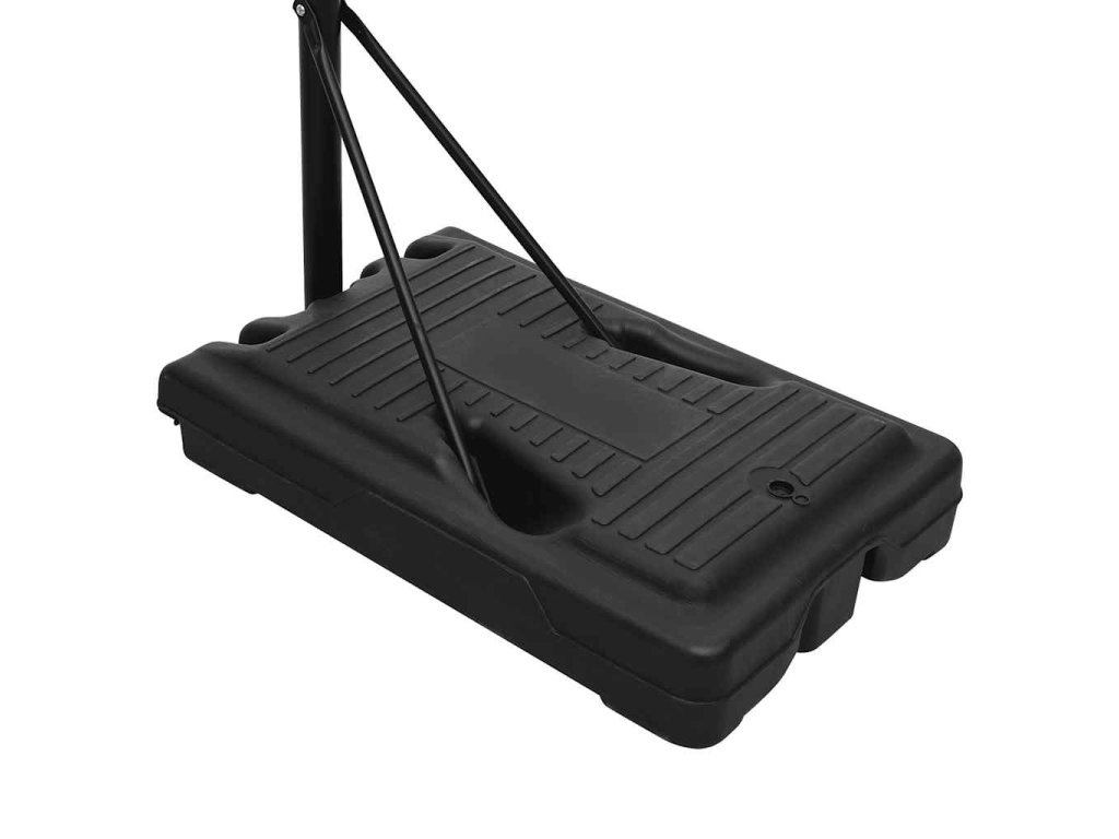 - Stabilní základna: Basketbalový přenosný stojan má trojúhelníkový stabilní design. Základnu lze naplnit vodou nebo pískem, což činí basketbalový koš stabilnějším.