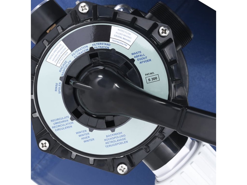 Tento pískový filtr je vyroben z plastu s vysokou hustotou a je vysoce odolný. Filtr je navržen tak, aby dosahoval průtoku 18 m³/h. Maximální pracovní tlak je 3,5 bar. K zahájení provozu je zapotřebí 50 kg filtračního písku (není součástí dodávky). Filtr je vybaven vícecestným ventilem se 7 polohami: filtrace (pro filtraci objemu vody), proplach (k propláchnutí filtračního systému), obtok (pro připojení přímo k bazénu/vířivce bez zapojení filtračního lůžka), zimní režim (pro zazimování), výplach (čištění filtračního média), uzavření (pro vypnutí veškerého průtoku vody do filtru) a vypuštění.