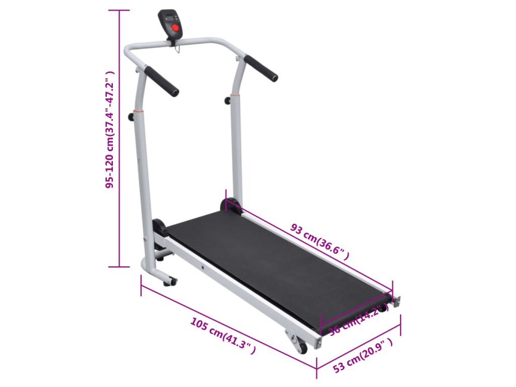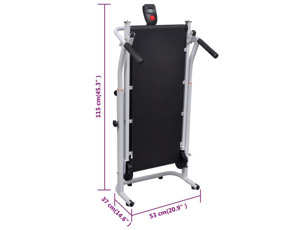 Běžecká plocha tohoto pásu je 93 x 36 cm. Pás rozběhnete pohybem vpřed. Čím rychleji kráčíte, tím rychleji se pás pohybuje. Jeho protiskluzový povrch je pohodlný a bezpečný. Monitor, který je součástí běžeckého pásu, sleduje rychlost, tréninkový čas, uraženou vzdálenost a spálené kalorie. Konstrukce tohoto běžeckého pásu je skládací, takže běžecký pás nezabírá při skladování příliš velký prostor. Nastavením výšky nohou stroje si můžete nastavit běžecký pás na požadovaný úhel.