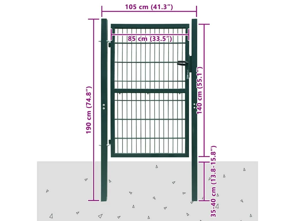 Instalace této 2D branky s robustními panty je jednoduchá. Vysoce odolný zamykací systém se dvěma klíči je rovněž součástí balení. Tato zahradní branka je skvělou kombinací stylu, síly, stability a odolnosti vůči korozi!
