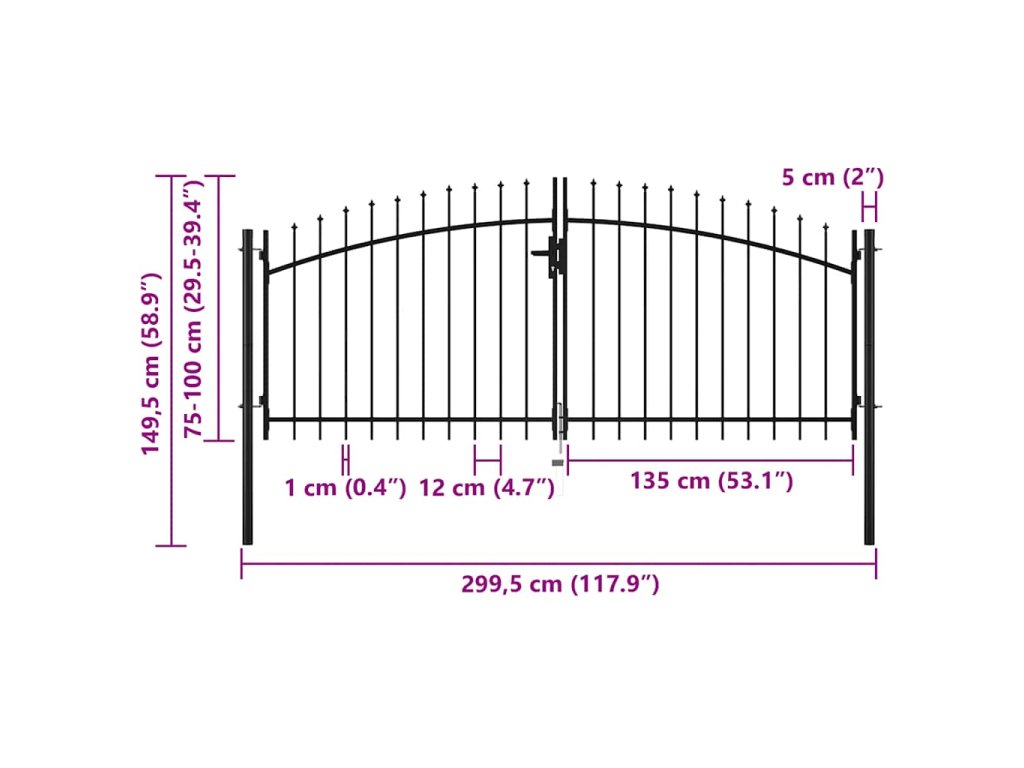 Dvoukřídlá brána s hroty 300 x 150 cm 144359