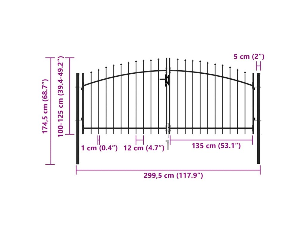 Dvoukřídlá zahradní brána s hroty ocelová 3 x 1,25 m černá 146027