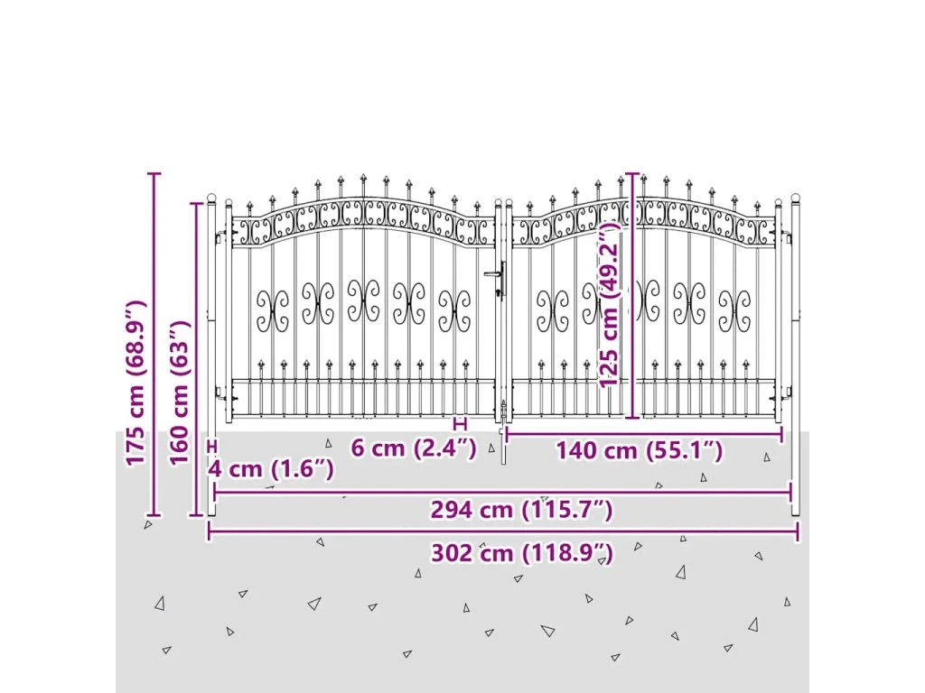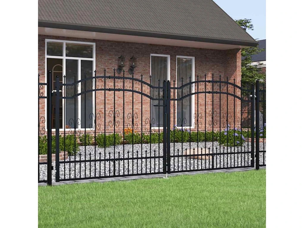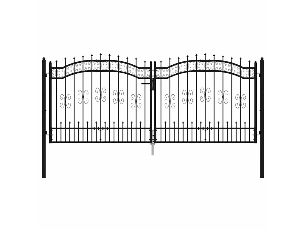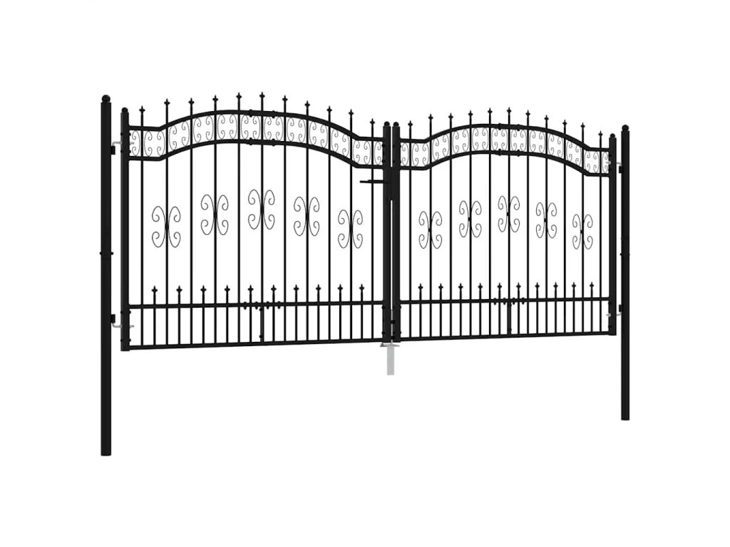 Plotová branka Kampen s kopím nahoře černá 302 x 125 cm ocel 151096