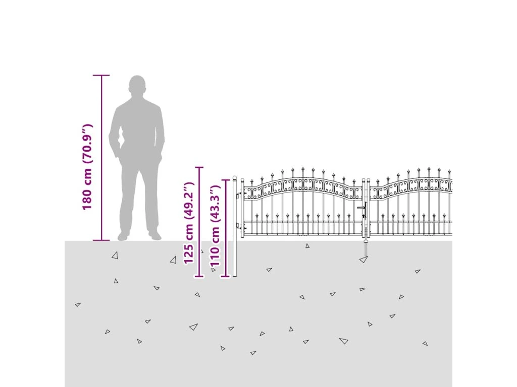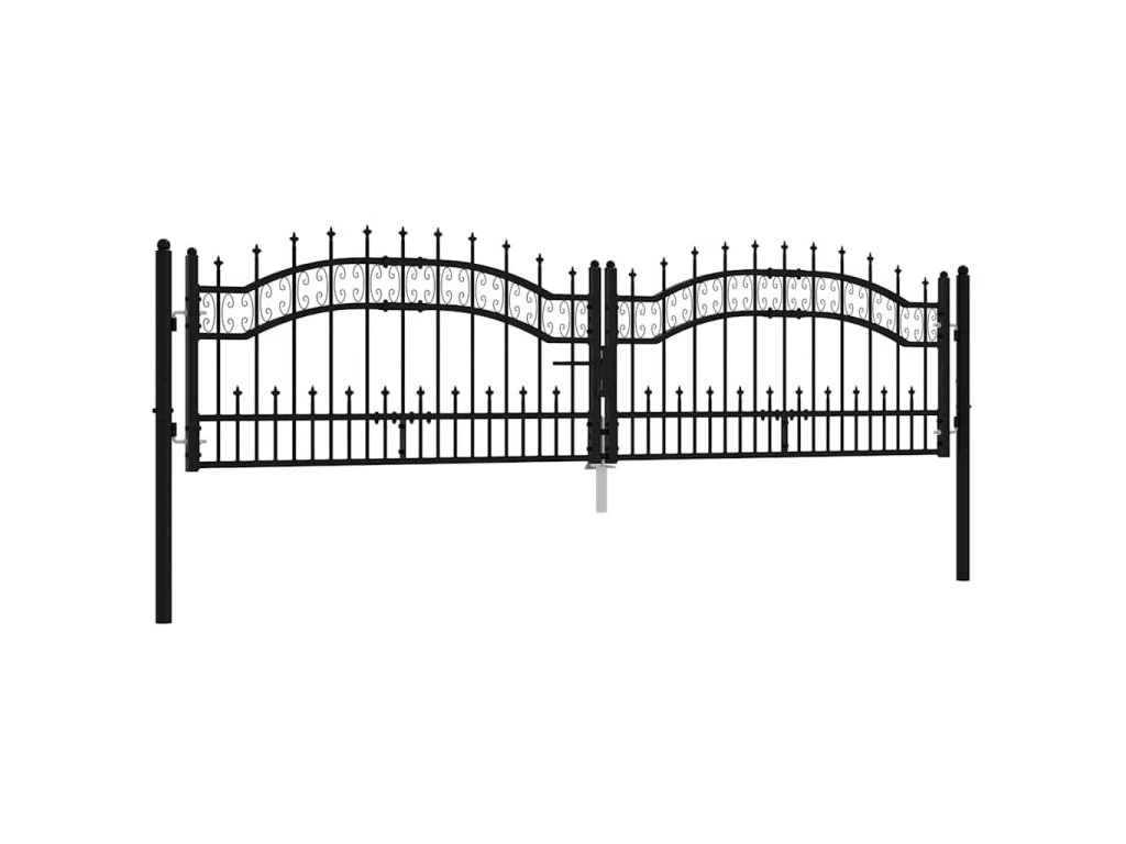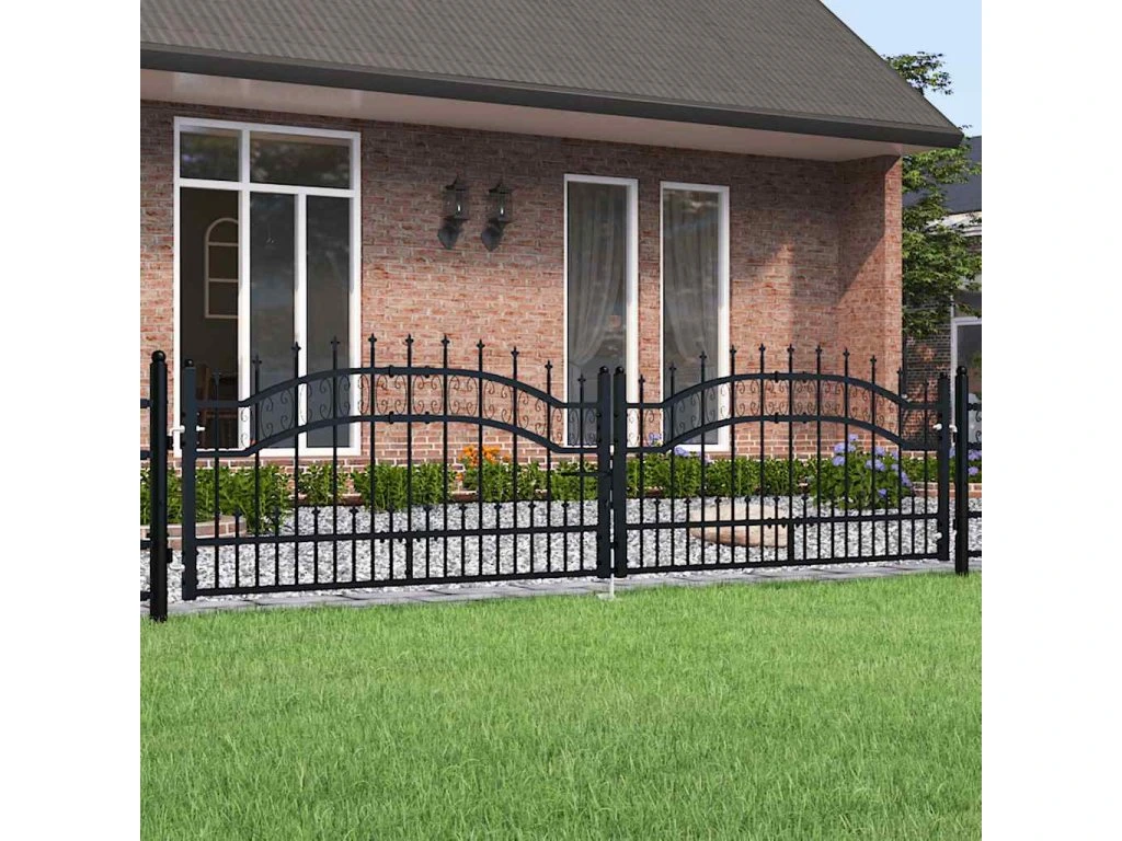 Plotová branka Kampen s kopím nahoře černá 302 x 78 cm ocel 151094