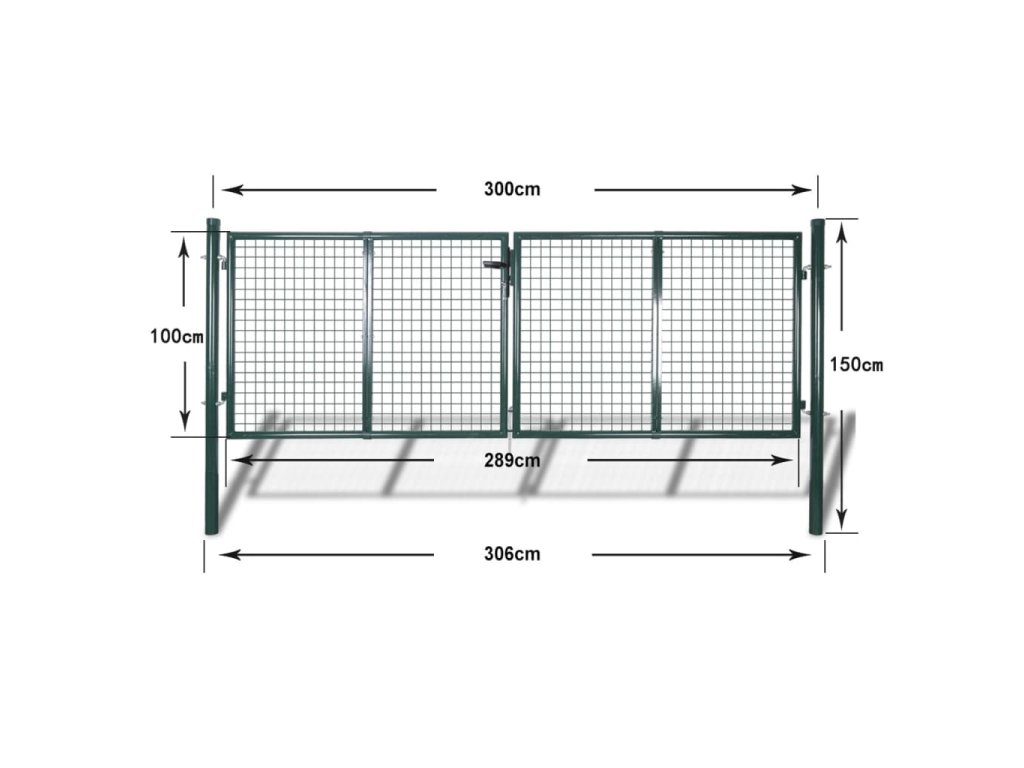 Plotová branka ocelová 300 x 100 cm zelená 42979