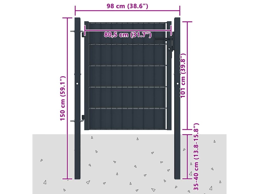 Plotová branka PVC a ocel 100 x 100 cm antracitová 145233