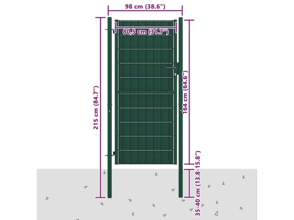Plotová branka PVC a ocel 100 x 164 cm zelená 145230