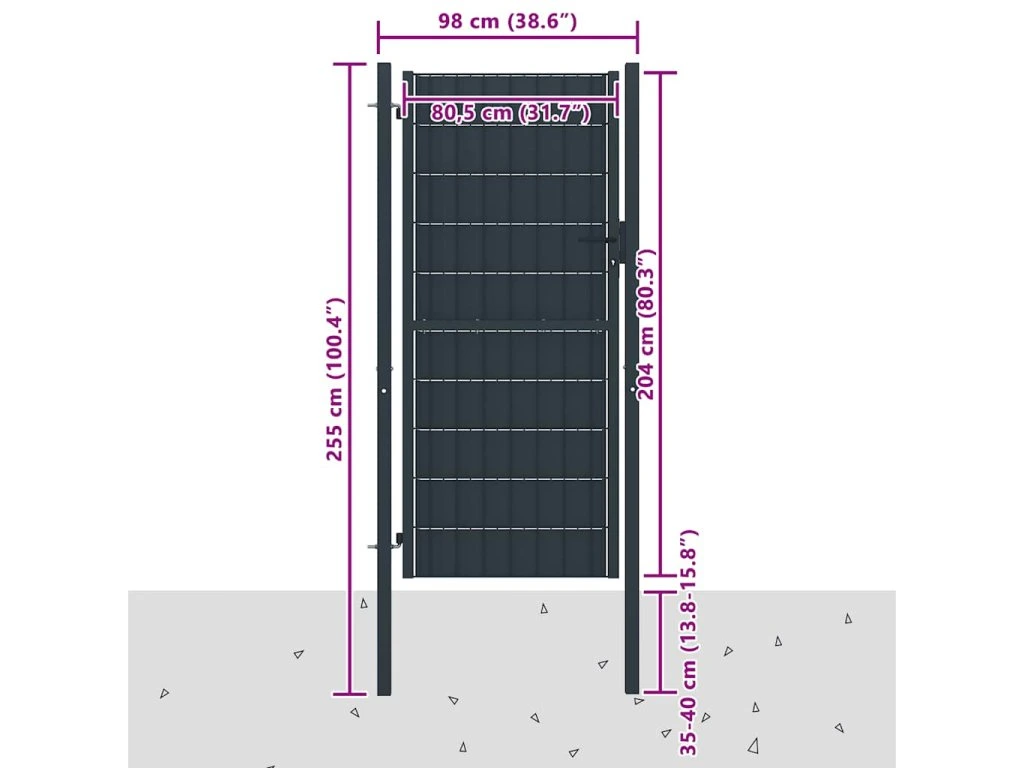 Plotová branka PVC a ocel 100 x 204 cm antracitová 145236