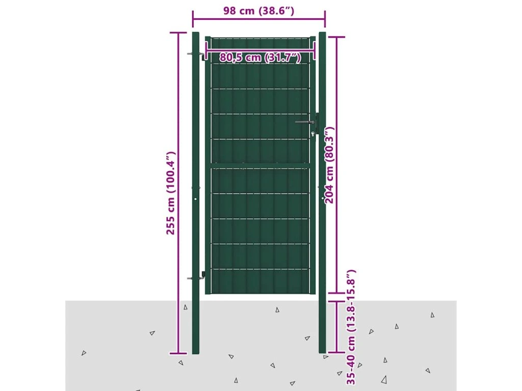 Plotová branka PVC a ocel 100 x 204 cm zelená 145231