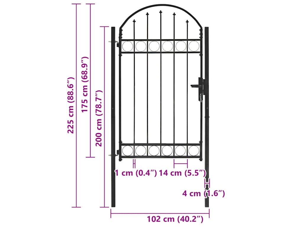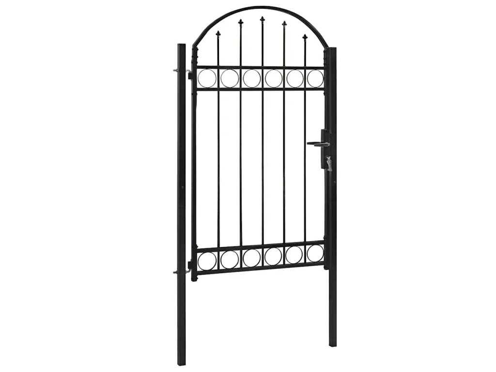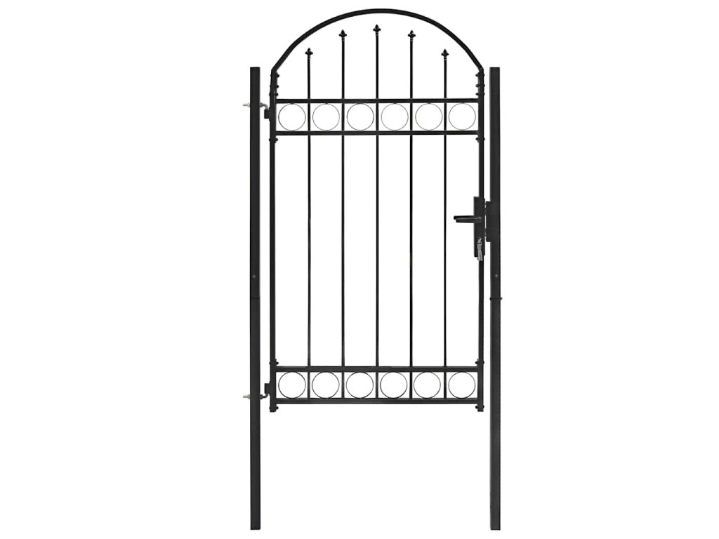 Plotová branka s klenutým vrškem ocelová 104 x 175 cm černá 143087