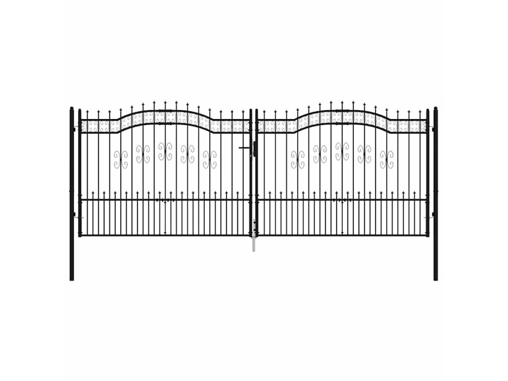Plotová branka s kopím nahoře černá 394,5 x 150 cm, práškově lakovaná ocel 151102