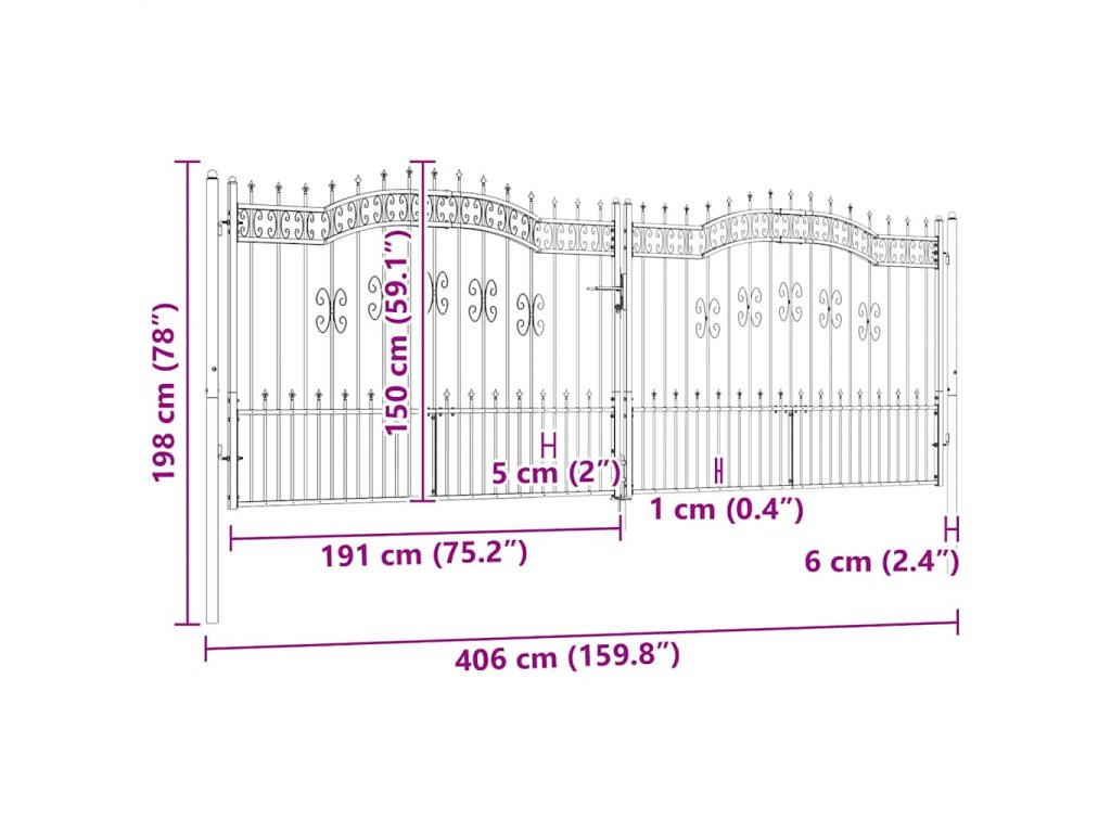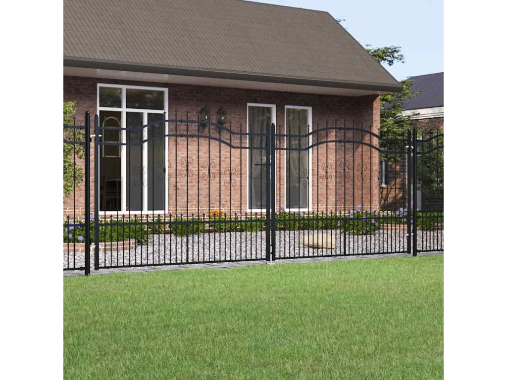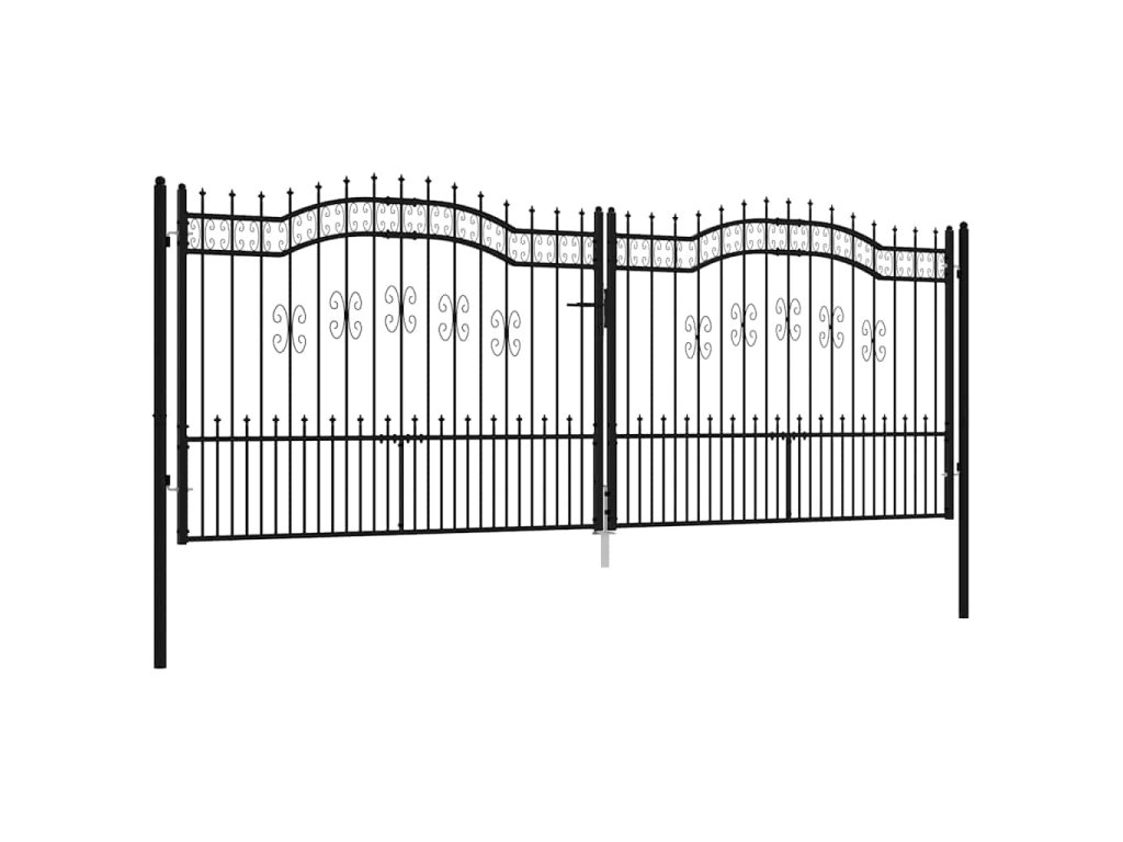 Plotová branka s kopím nahoře černá 406 x 150 cm, práškově lakovaná ocel 151102