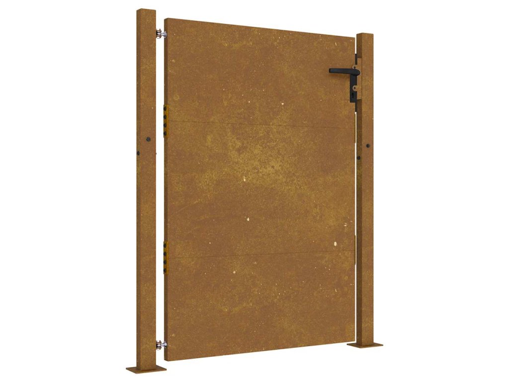 - Materiál s dlouhou životností: Kovová branka je vyrobená z cortenové oceli. Cortenová ocel, také známá jako povětrnostně odolná ocel. Je ze své podstaty antikorozní. Při prvním vystavení atmosférickým podmínkám se na ní vytvoří rezavá ochranná vrstva proti korozi. Nemusíte ji tedy natírat. Tím ušetříte náklady na údržbu a opravy. Výrazný hnědý odstín cortenové oceli jistě upoutá pozornost. Povětrnostně odolná ocel je výjimečně odolná a obstojí ve zkoušce času.