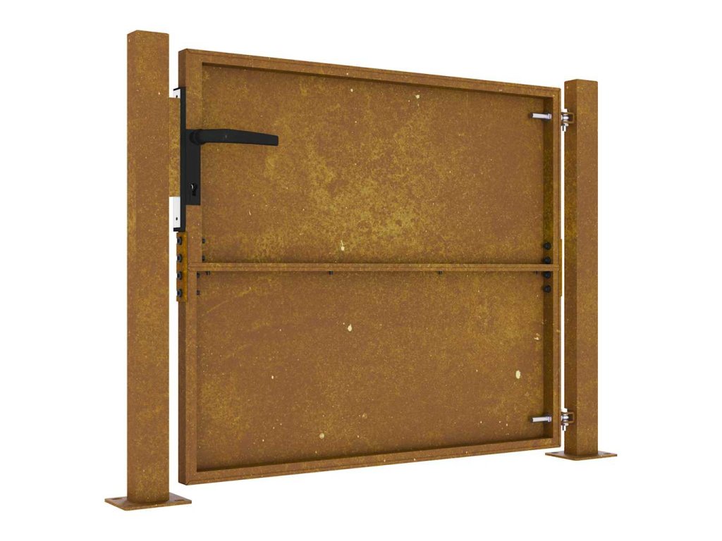 - Materiál s dlouhou životností: Kovová branka je vyrobená z cortenové oceli. Cortenová ocel, také známá jako povětrnostně odolná ocel. Je ze své podstaty antikorozní. Při prvním vystavení atmosférickým podmínkám se na ní vytvoří rezavá ochranná vrstva proti korozi. Nemusíte ji tedy natírat. Tím ušetříte náklady na údržbu a opravy. Výrazný hnědý odstín cortenové oceli jistě upoutá pozornost. Povětrnostně odolná ocel je výjimečně odolná a obstojí ve zkoušce času.