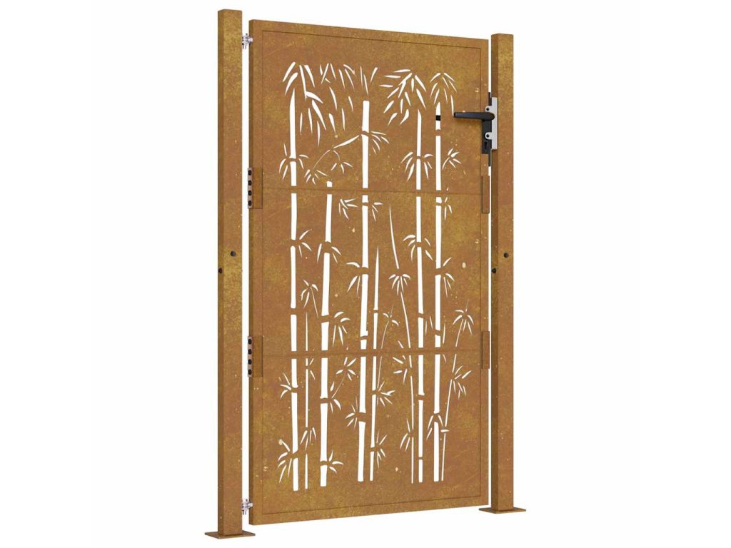 Zahradní branka 105 x 130 cm corten ocel bambusový design 153186