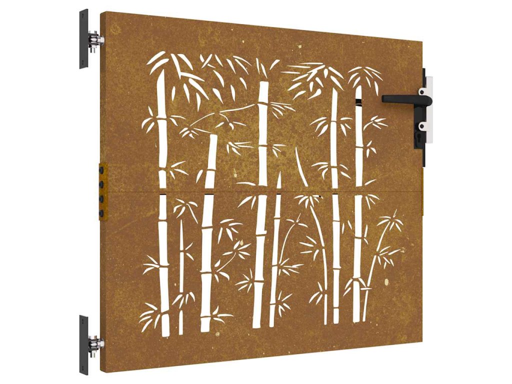 Zahradní branka 85 x 100 cm corten ocel bambusový design 153233