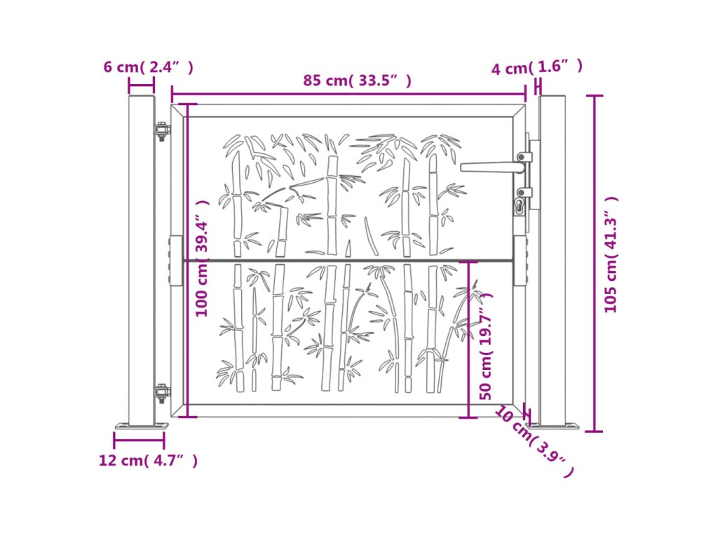 Zahradní branka antracitová 105 x 105 cm ocelová bambusová konstrukce 153179
