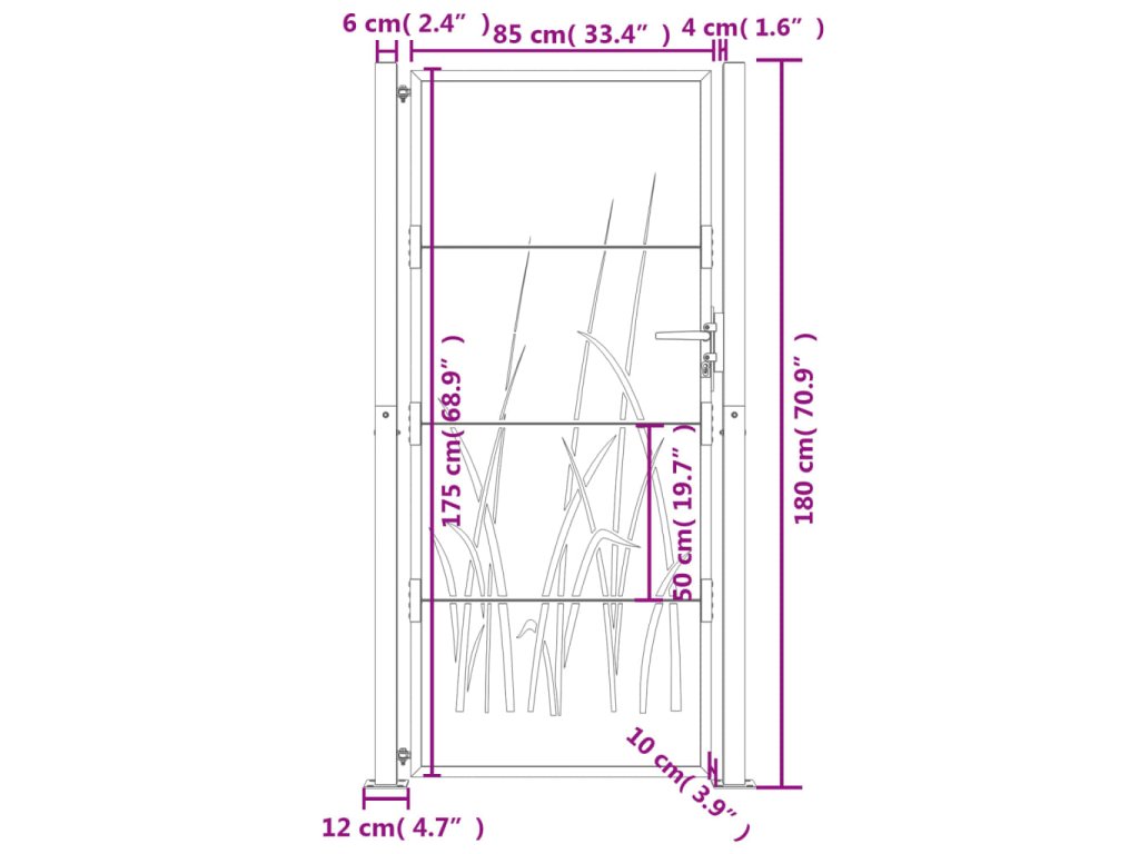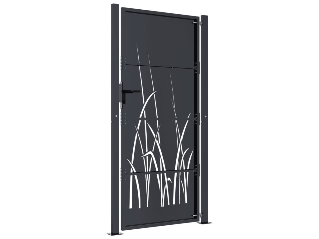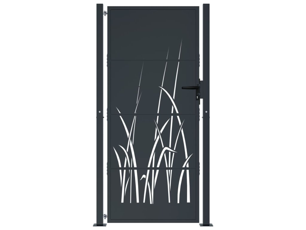 Zahradní branka antracitová 105 x 180 cm ocelová, design trávy 153170
