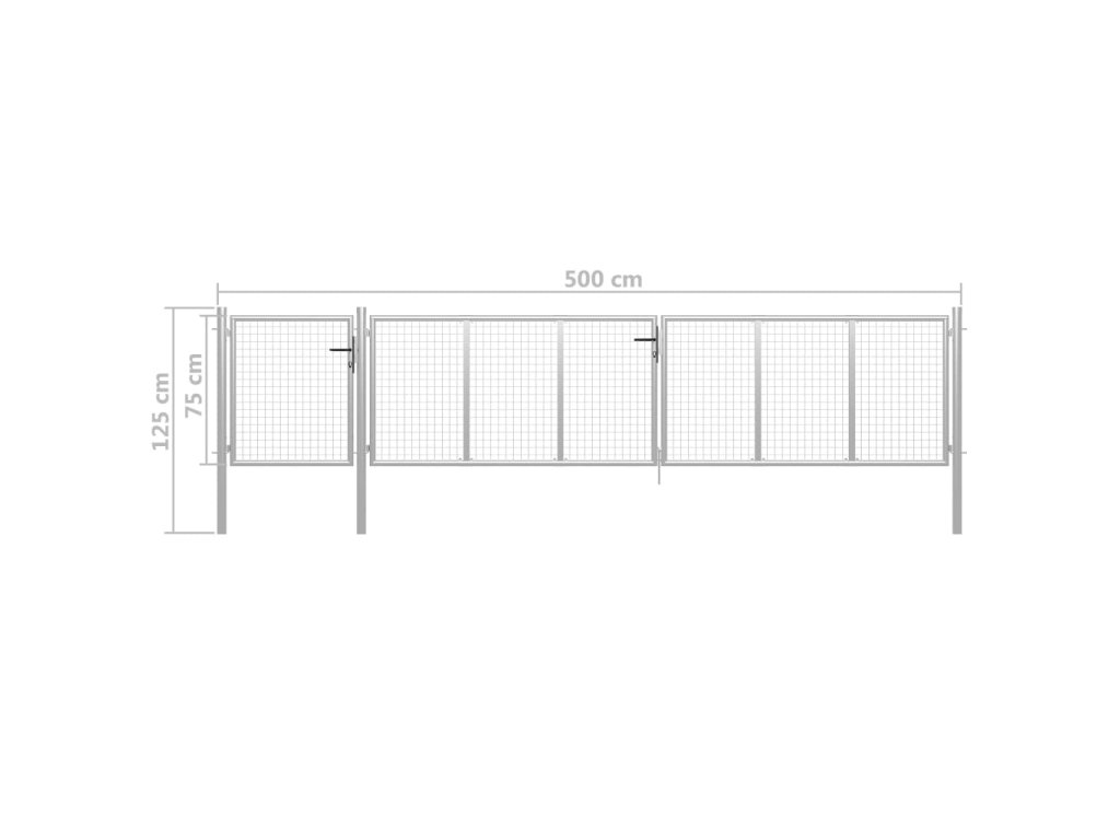 Zahradní branka ocelová 500 x 75 cm stříbrná 144352