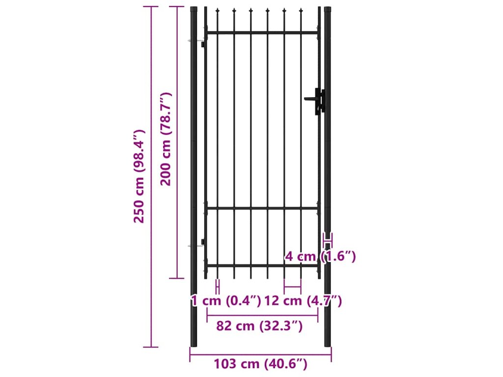 Zahradní branka s hroty ocelová 1 x 2 m černá 145746