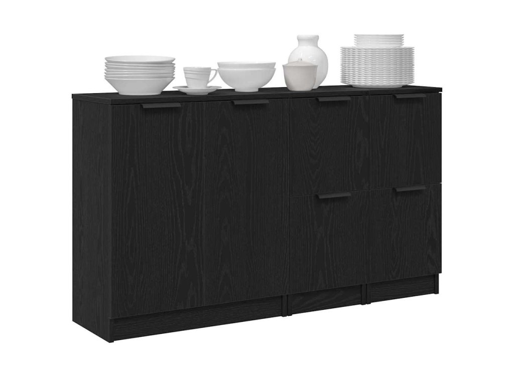 Tenhle moderní černý dřevěný bufet dodává styl a praktičnost tvé jídelně. Jeho elegantní obdélníkový tvar a hladký matný povrch z něj dělají opravdového krasavce, který se bez námahy hodí do jakéhokoli moderního prostředí. Je navržený tak, aby uložil a organizoval tvoje jídelní potřeby, takže všechno od porcelánu po ubrusy bude bezpečně uschováno. Představ si, že hostíš večeři, kde je všechno na svém místě a tvá místnost zůstává díky tomuto krásnému bufetu uklizená.