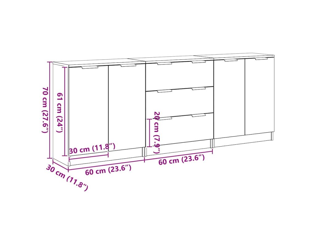 - Materiály: Vyrobený z kvalitní dřevotřísky, tenhle bufet je navržený tak, aby vydržel. Má odolnou konstrukci a hladký, elegantní povrch, který si udrží svůj vzhled po dlouhá léta.