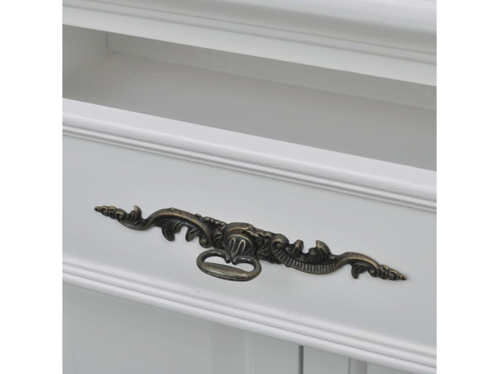 Zásuvka se snadno otevírá, takže můžete rychle vyjmout to, co potřebujete. Skříňka je vyrobená z robustní MDF a borového dřeva a výborně odolává každodennímu používání. Bílý nátěr usnadňuje její čištění. Postačí vám k tomu navlhčený hadřík.