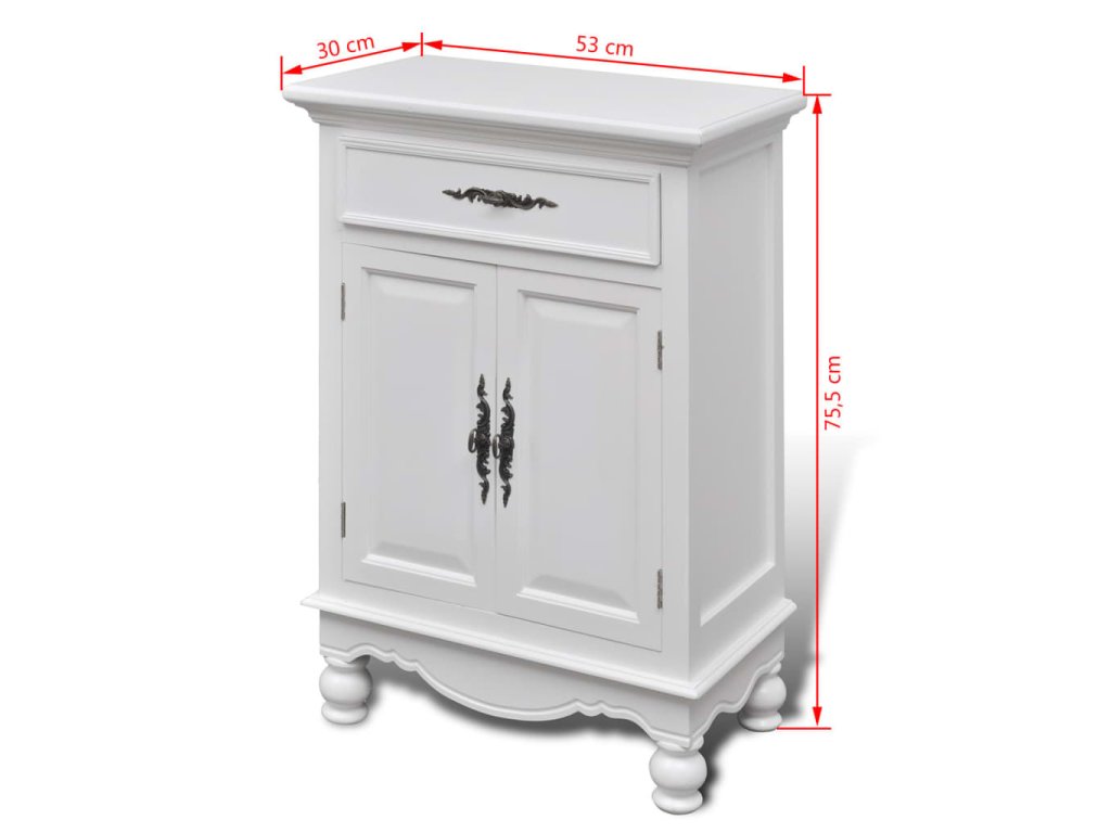 Tato elegantní dřevěná skříňka se starožitným vzhledem má dvoukřídlá dvířka a 1 zásuvku, nabízí tedy dostatek úložného prostoru a pomůže vám udržet vaše věci úhledně uspořádané. Bude to skvělý doplněk do vaší ložnice, kuchyně, koupelny nebo jiné místnosti v domě.