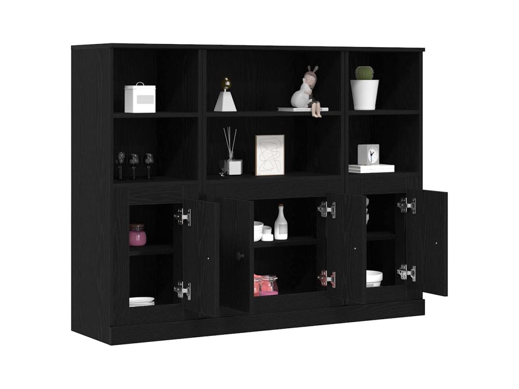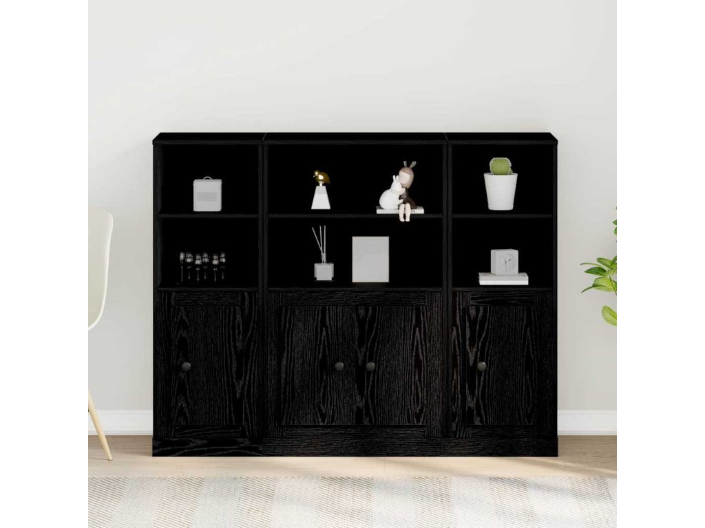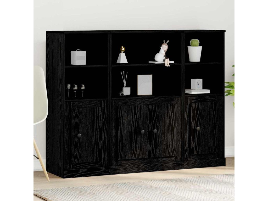 Materiál z inženýrského dřeva Vyrobeno z kvalitního inženýrského dřeva, tenhle bufet obstojí ve všech tvých úložných potřebách. Odolné inženýrské dřevo zajistí dlouhou životnost a tvar, s moderním povrchem, který je hladký a odolný proti skvrnám. Takže vypadá pořád jako nový s minimální údržbou.,Prostorná kapacita úložného prostoru S tučnými vnitřními prostory, tenhle bufet pokryje všechny tvoje úložné potřeby. Jeho prostorné přihrádky zvládnou různé věci a jednoduchý design udržuje všechno úhledně uspořádané. Ať už jde o nádobí nebo tvé koníčky, tenhle bufet tě nezklame.,Moderní design Zdůrazňuje čistý, minimalistický vzhled, má ostré linie a decentní styl. Snadno zapadne do moderního interiéru, přináší ti jak styl, tak funkčnost. Černý dubový povrch přidává jedinečnou, ale decentní eleganci, promění jakýkoliv pokoj na stylový prostor.,Funkční vícerozměrné využití Tento stylový bufet je navržen tak, aby byl užitečný v jakékoli místnosti, od obýváků po jídelny, a přináší jednotný vzhled tvému domovu. Jeho univerzálnost znamená, že si poradí s různými životními styly a přitom nabízí dostatek organizovaného prostoru v kompaktním designu.,Údržba a péče Dva lidi a šroubovák – to je vše, co potřebuješ na sestavení, s pouhými několika jednoduchými kroky. Udržuj ho ve skvělém stavu otřením suchým hadříkem, abys zajistil, že zůstane v top formě s minimálním úsilím, zatímco si udrží svůj trendy vzhled po léta. Tento snadný údržbový plán skvěle zapadá do moderních trendů nízkoúdržbového, ale stylového domácího dekoru.- Barva: Černý dub