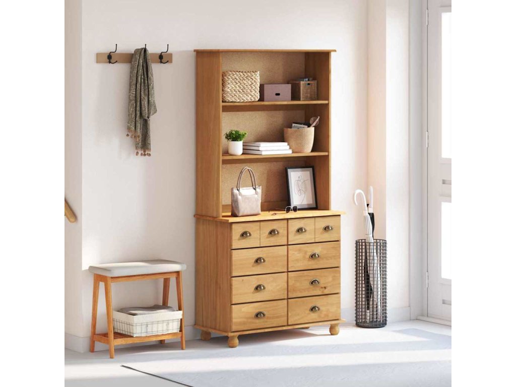 - Vysoce kvalitní borové dřevo Tento skvělý hutch je z masivního borového dřeva, což znamená, že je pevný a stabilní na hodně let. Jeho úžasná textura přidává do prostoru teplo, a přírodní zrno a uzly borovice mu dodávají zvláštní šarm.