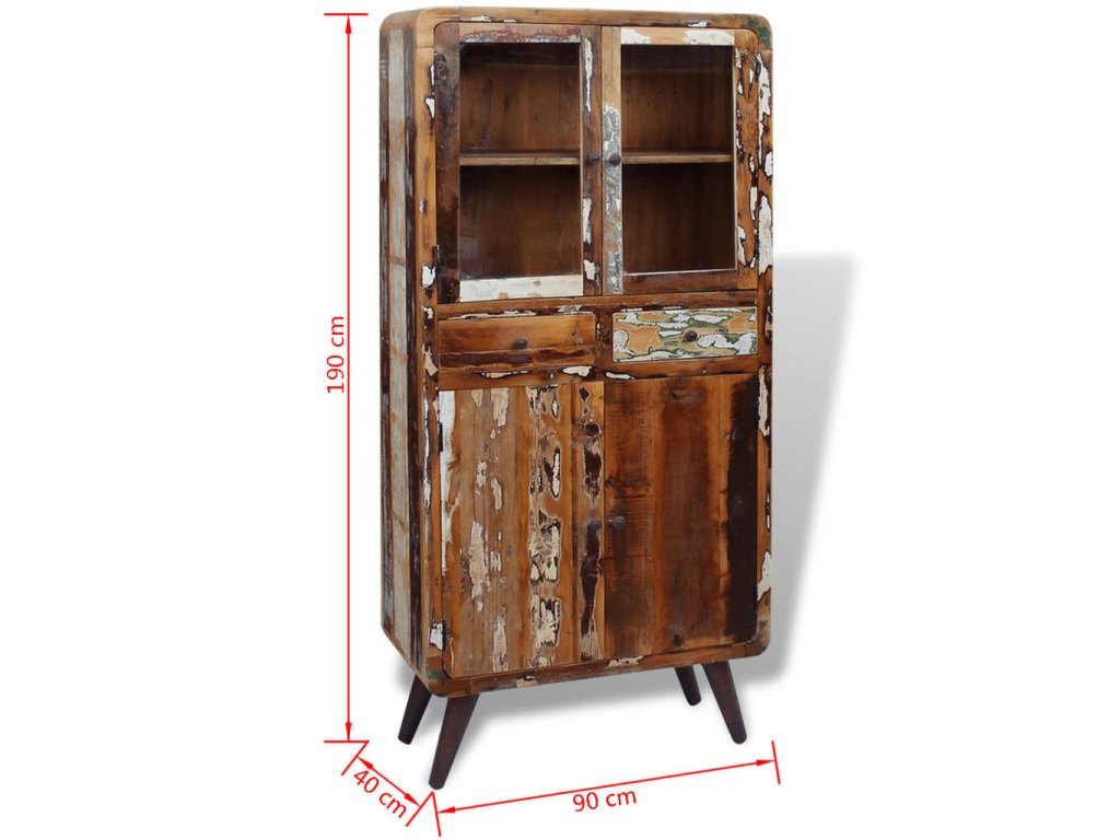 Vysoká skříňka je vyrobená z recyklovaného dřeva, je pevná, odolná a krásná a má vlastnosti různých dřevin, jako je teakové dřevo, mangovníkové dřevo, akácie, recyklované dřevo, tvrdé dřevo atd. Každý kus tohoto nábytku je unikátní a lehce odlišný od všech ostatních. Známky opotřebení a zřetelná kresba dřeva zase vypovídají o bohaté historii a každému kusu dodávají autentický vzhled.