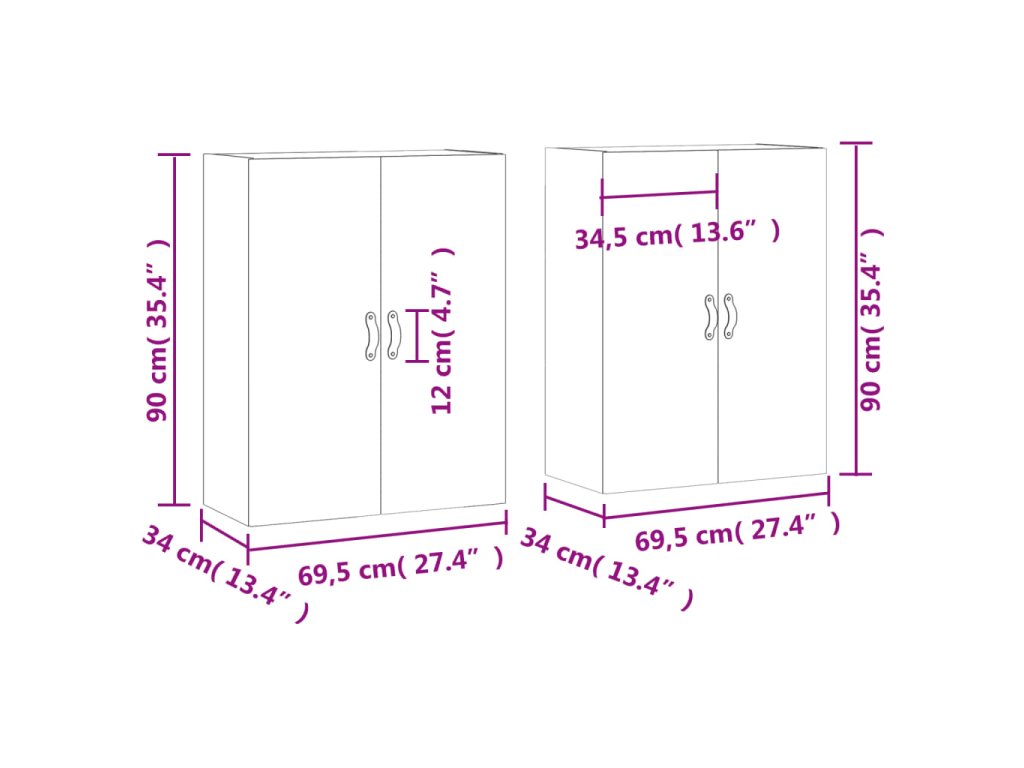 Nástěnné skříňky 2 ks bílé 69,5 x 34 x 90 cm 3195595