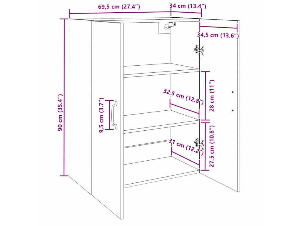 Nástěnné skříňky 2 pcs Černý dub 69.5 x 34 x 90 cm 3394553