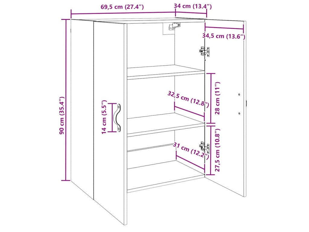 Nástěnné skříňky 2 pcs Černý dub 69.5 x 34 x 90 cm 3394574