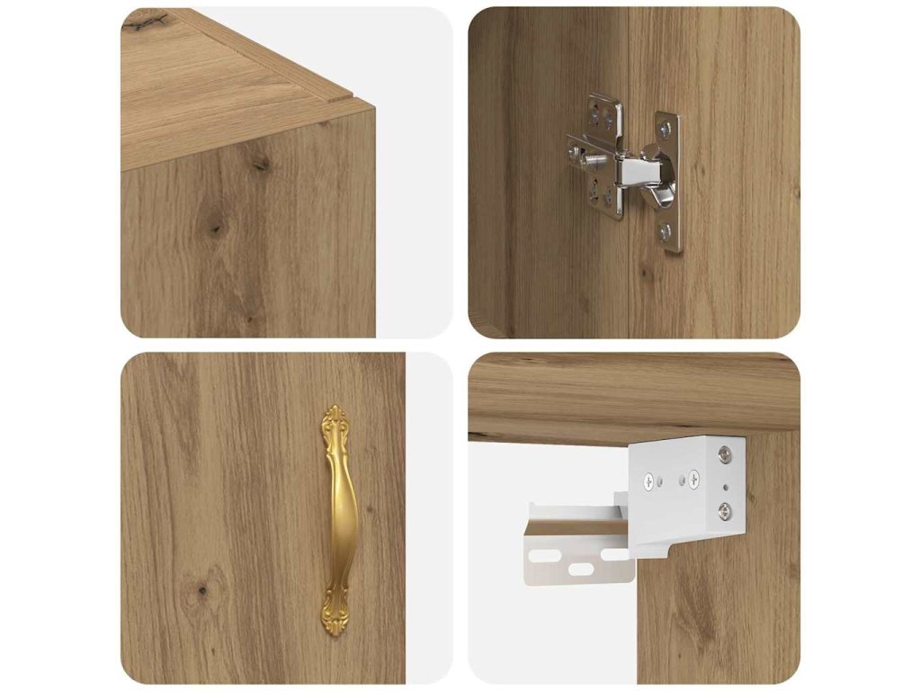 - Odolná konstrukce Tato skříňka je vyrobena z pevných materiálů, silného inženýrského dřeva s hezkým hladkým povrchem. Je navržená tak, aby vydržela a vypadala skvěle v moderním domově. Nezkroutí se a zvládne každodenní používání.