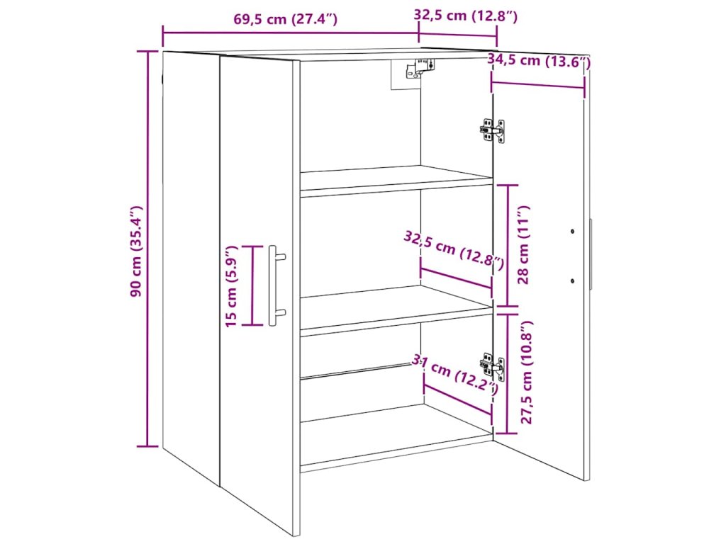 Nástěnné skříňky 2 pcs Staré dřevo 69.5 x 34 x 90 cm 3394512