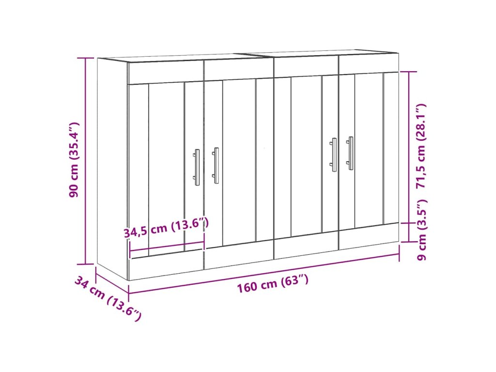 Nástěnné skříňky Nástěnný 2 pcs Staré dřevo 69,5 x 34 x 90 cm 3333105