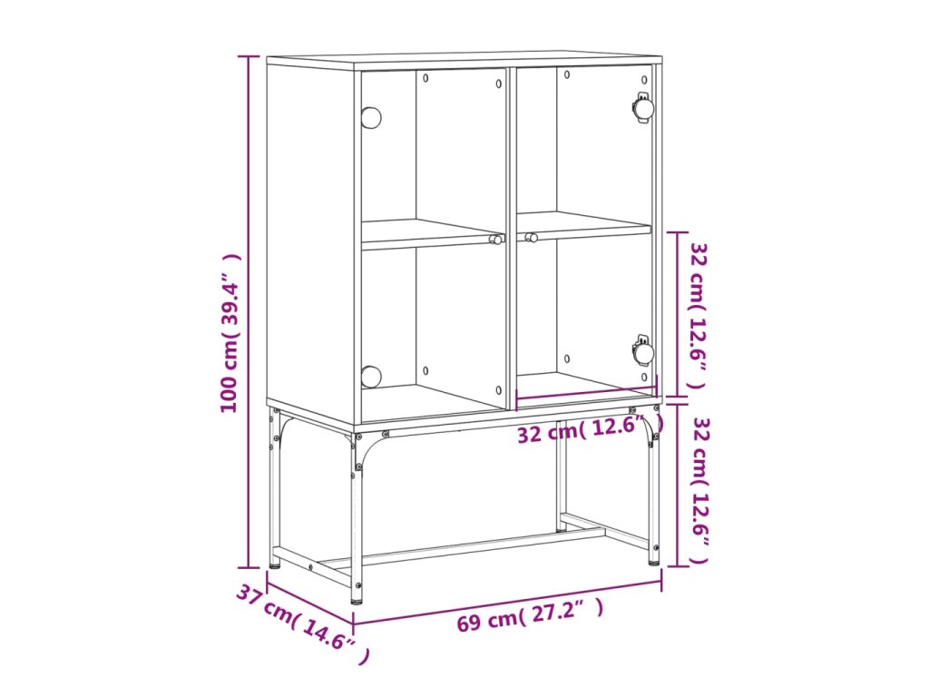 Odkládací skříňka skleněná dvířka betonově šedá 69x37x100 cm 836549