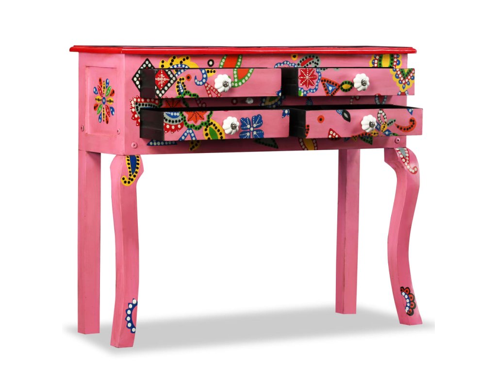 Odkládací stolek, masivní mangovník, ručně malovaný, růžový 244597
