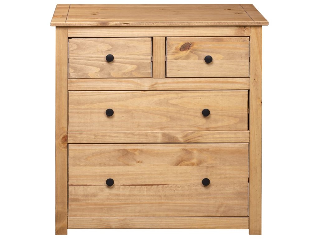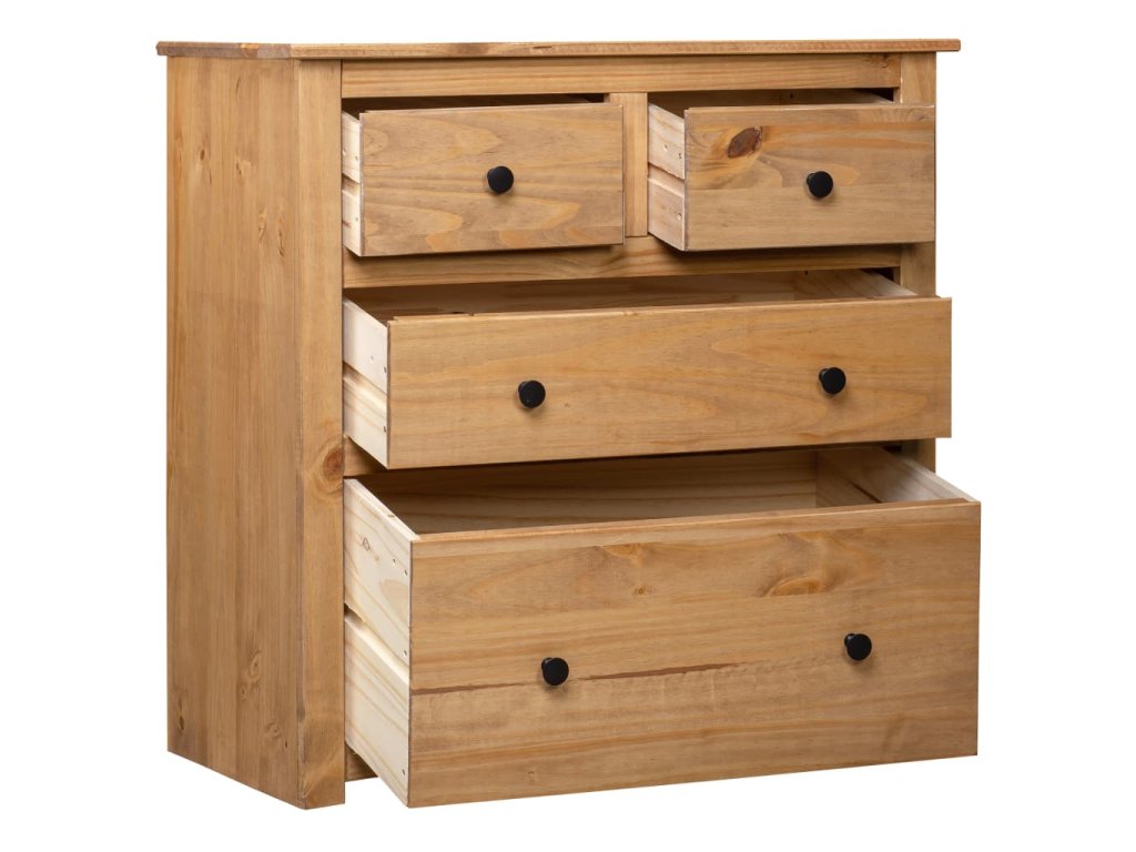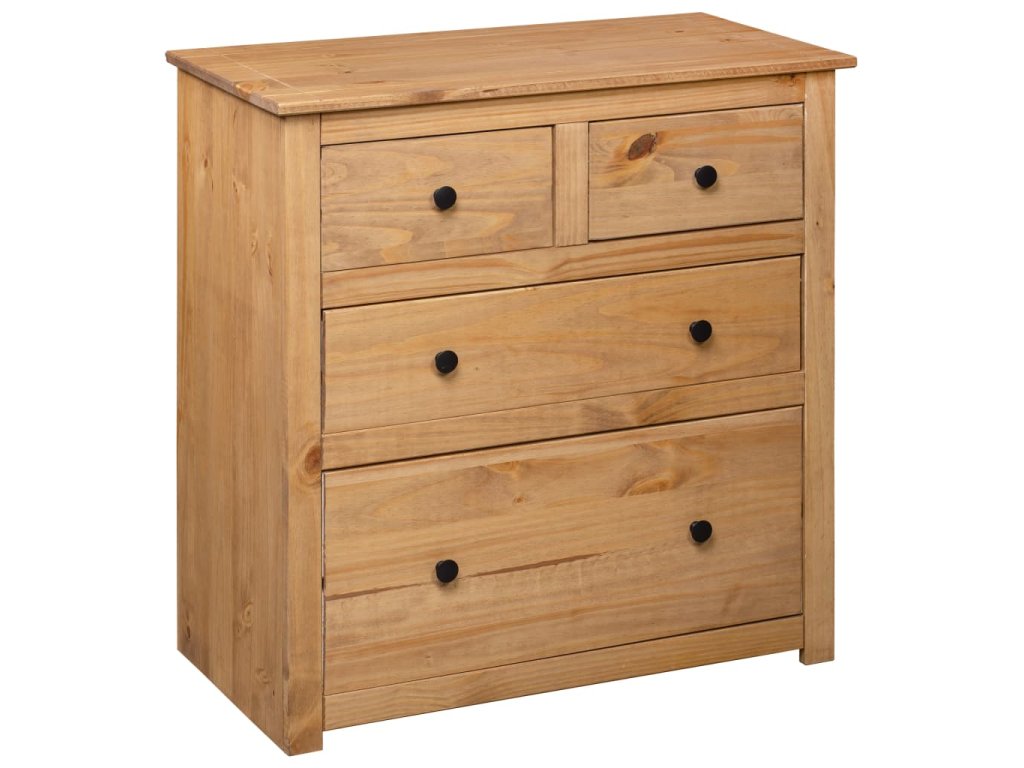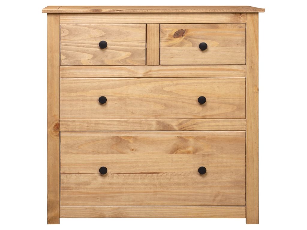 Příborník se 4 zásuvkami vám poskytne spoustu úložného prostoru, kam si můžete přehledně ukládat vaše časopisy, knihy, DVD a multimediální zařízení tak, abyste je měli zorganizované a stále po ruce. Robustní horní deska je ideální pro vystavení dekorativních předmětů, jako jsou vázy nebo rostliny v květináčích. Příborník je vyrobený z masivního borového dřeva. Každá fáze výrobního procesu se provádí s největší péčí, ať už se jedná o leštění, natírání nebo lakování. Zručné řemeslné zpracování a krásná kresba dřeva propůjčuje každému kusu nábytku jeho jedinečný a od všech ostatních lehce odlišný vzhled.