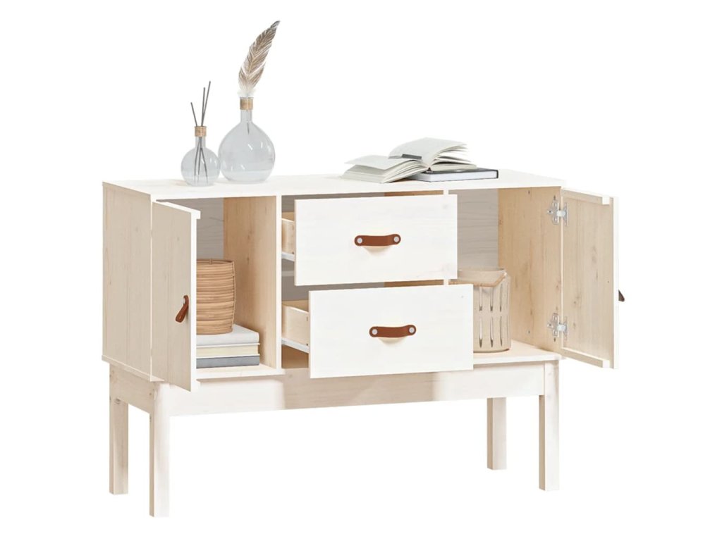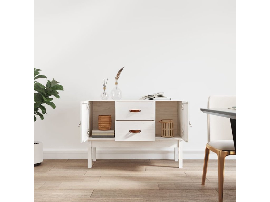 Příborník bílý 110 x 40 x 78 cm masivní borové dřevo 823525