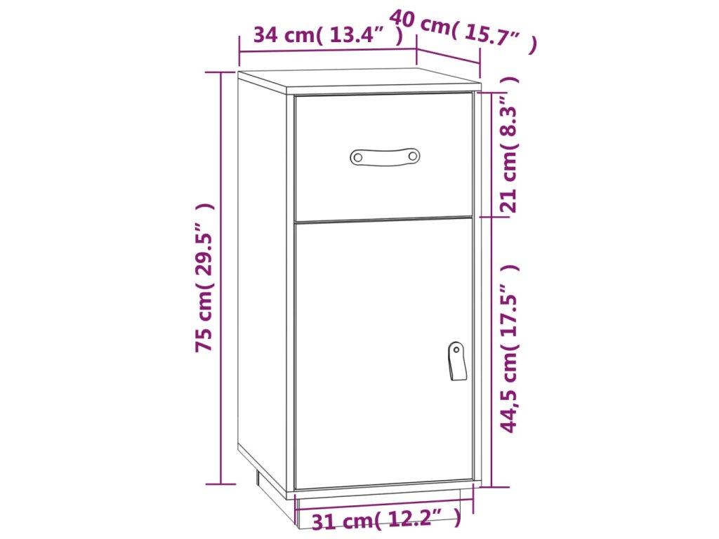 Příborník bílý 34 x 40 x 75 cm masivní borové dřevo 820123