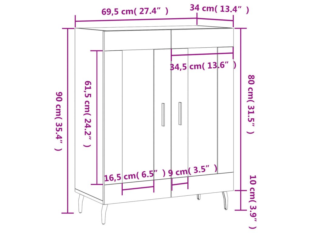 - Rozměry: 69,5 x 34 x 90 cm (Š x H x V)