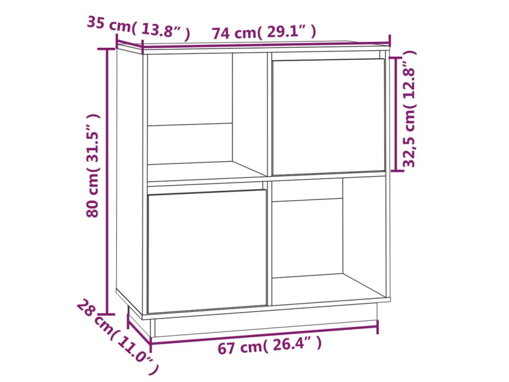 Příborník bílý 74 x 35 x 80 cm masivní borové dřevo 814350