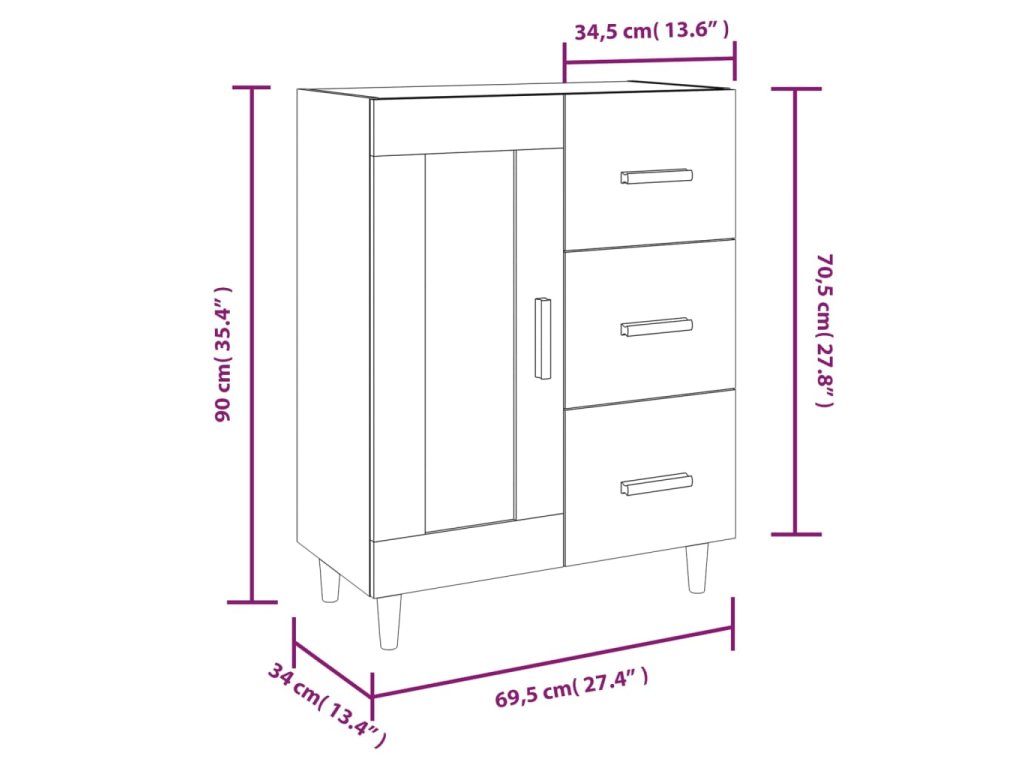 Příborník bílý s vysokým leskem 69,5x34x90 cm kompozitní dřevo 812237