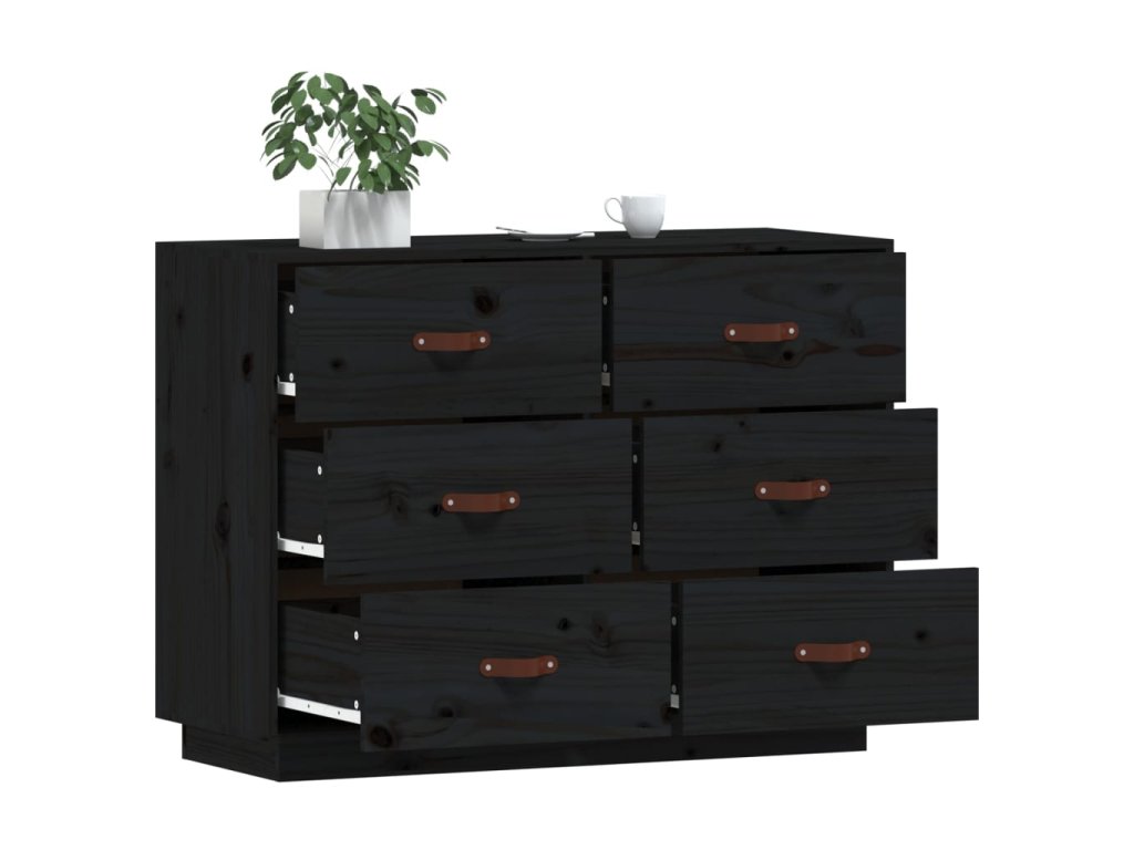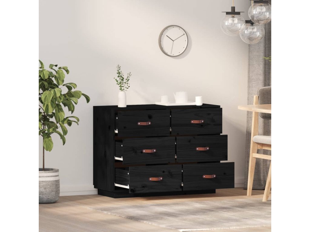 Příborník černý 100 x 40 x 75 cm masivní borové dřevo 820146