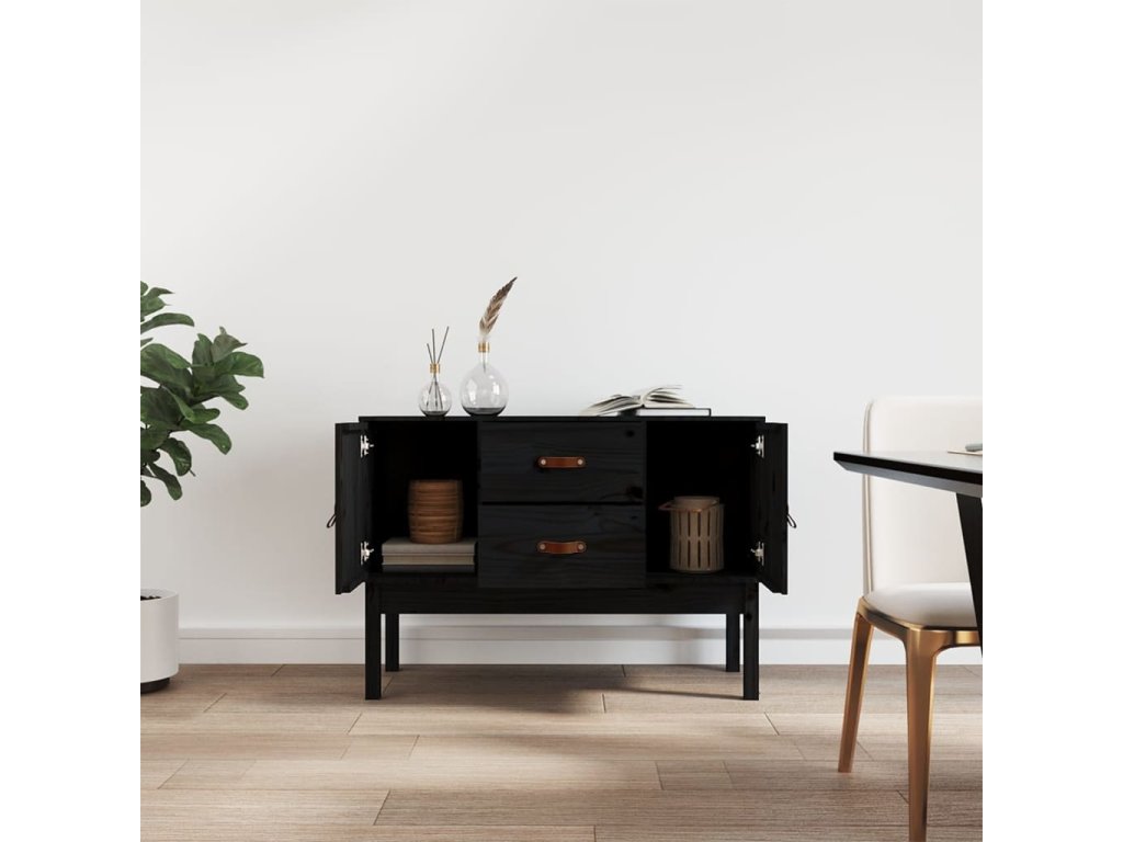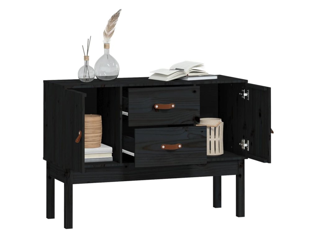 Příborník černý 110 x 40 x 78 cm masivní borové dřevo 823528