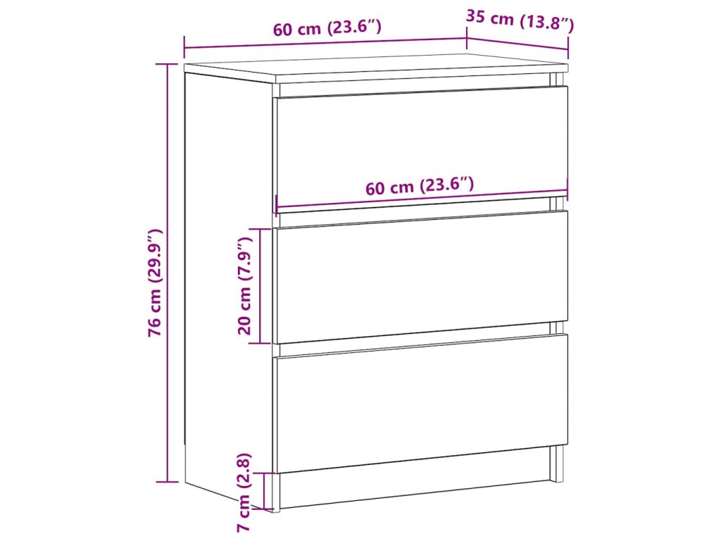 Skříňka se 3 zásuvkami poskytuje spoustu prostoru pro uložení knih, multimediálních zařízení a dalších věcí. Robustní horní deska je ideální pro vystavení dekorativních předmětů, fotorámečků nebo pokojových rostlin. Můžete jej také použít jako nízkou skříňku, odkládací skříňku apod. Tento příborník je vyroben tak, aby vydržel déle vzhledem k prémiovému kompozitnímu materiálu. Snadno se čistí vlhkým hadříkem.