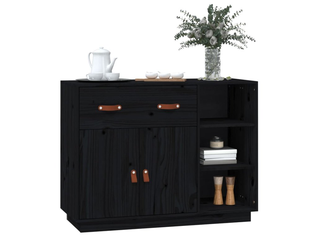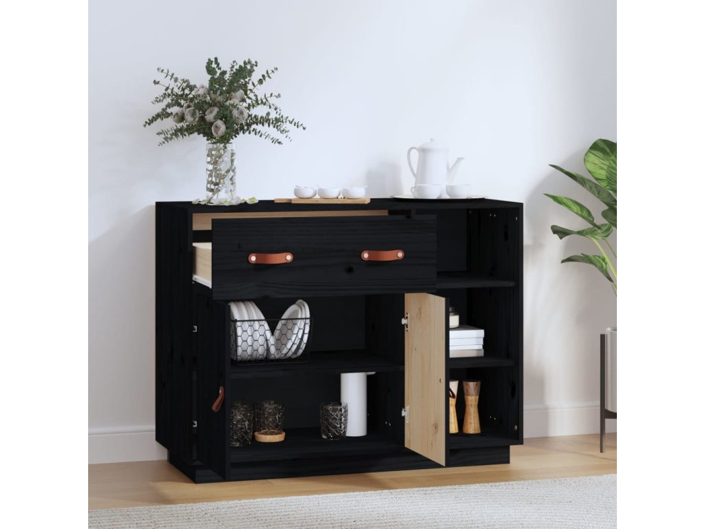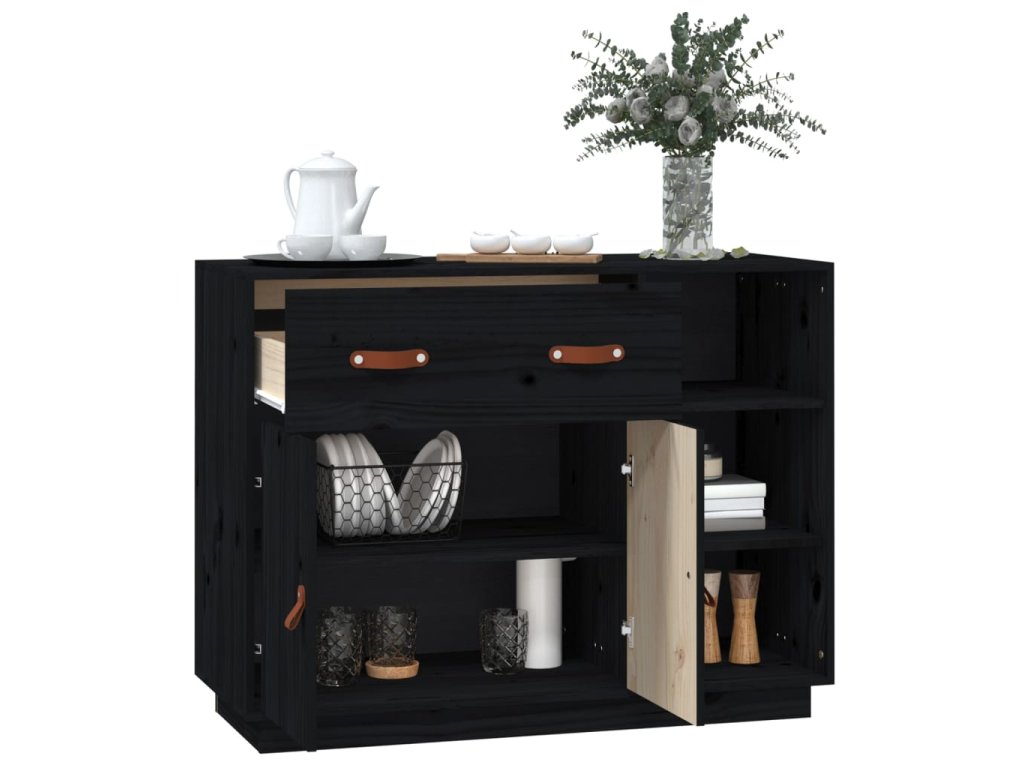 Příborník černý 98,5 x 40 x 75 cm masivní borové dřevo 820141
