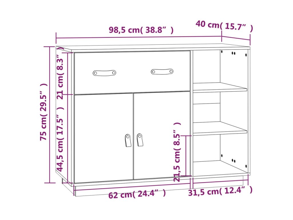 - Rozměry: 98,5 x 40 x 75 cm (Š x H x V)